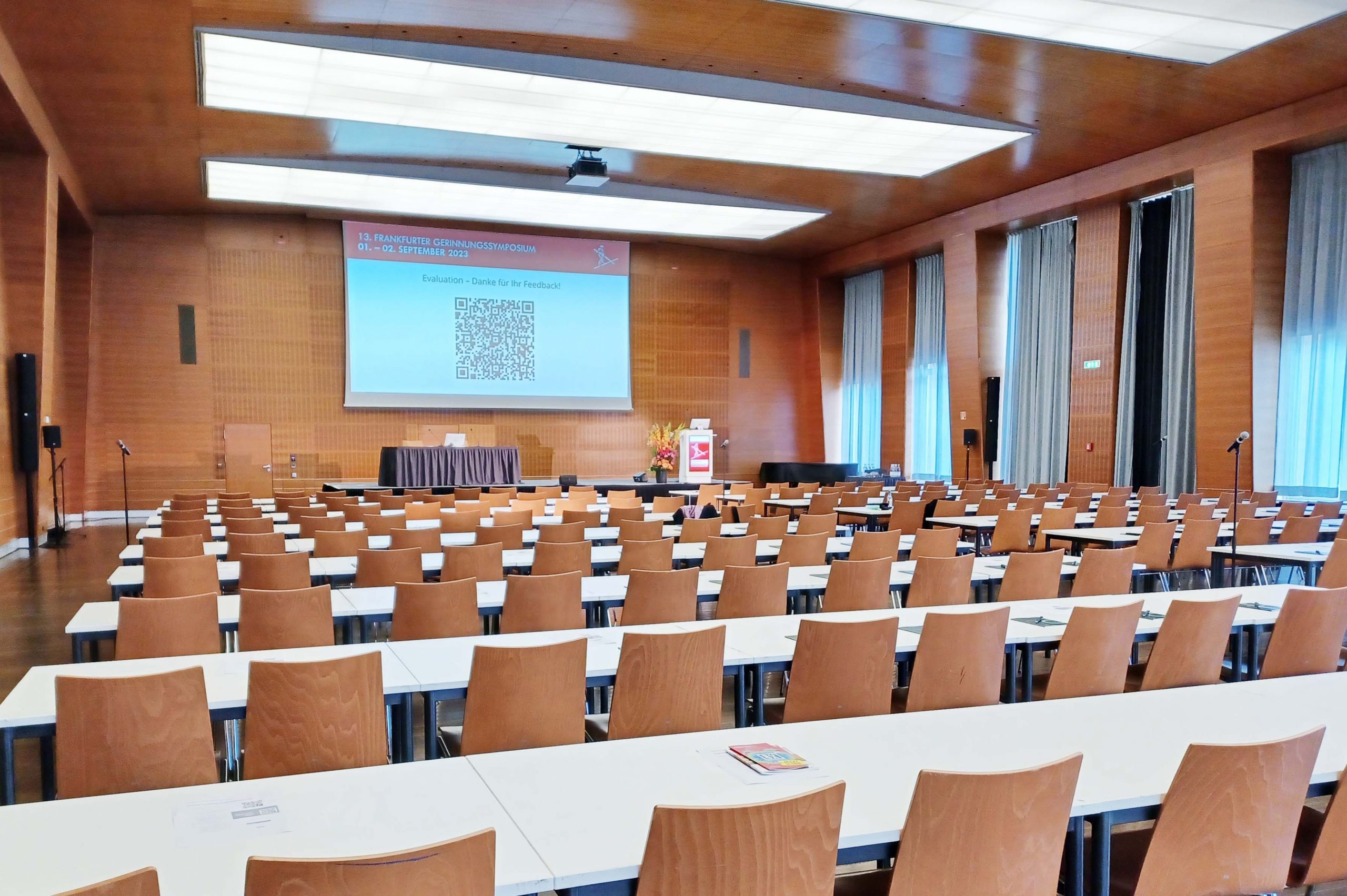 Vom licht­durch­flu­te­ten Kon­fe­renz­raum mit Ter­ras­se bis zum groß­zü­gi­gen moder­nen Hör­saal und Fest­sä­len für Gesell­schafts­aben­de oder Get Tog­e­ther – ent­de­cken Sie unse­re viel­sei­ti­gen Räum­lich­kei­ten im Her­zen Frank­furts, die sowohl für hoch­ka­rä­ti­ge Gre­mi­en­tref­fen als auch für leben­di­ge inter­na­tio­na­le Fach­kon­fe­ren­zen und wis­sen­schaft­li­che Kon­gres­se geeig­net sind.